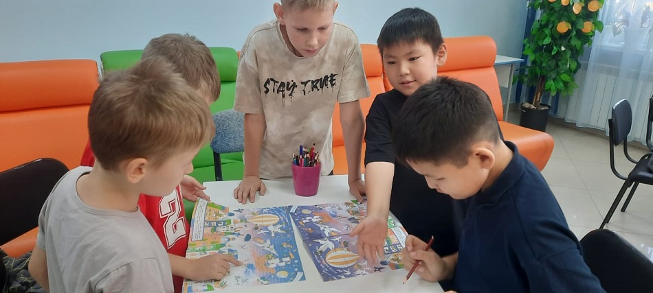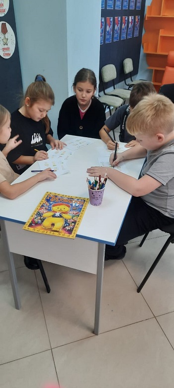 Также в каждом журнале имеется страничка «Игродом»: кроссворды, ребусы, игры, скороговорки, головоломки, требующие командной составляющей. Ученики выполнили поставленные задачи, нашли отличия и зашифрованные предметы в картинке, назвали летающих героев сказок из предложенных иллюстраций, решали ребусы, отгадали загадки из журнала. Одним из сложных, но интересных заданий было расшифровать пиктограмму, с которым ребята справились ловко.