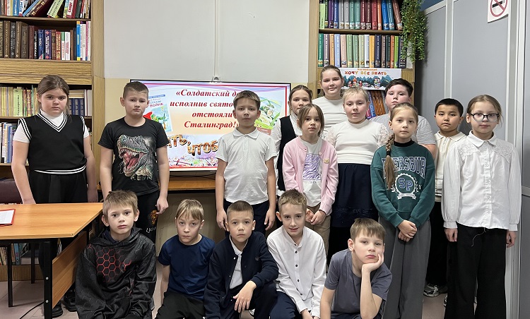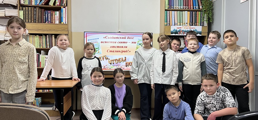 К этой дате в библиотеке посёлка Пеледуй был проведён урок мужества «Солдатский долг исполнив свято – мы отстояли Сталинград!» для учащихся третьих классов. Библиотекари рассказали учащимся, что Сталинградская битва — одно из крупнейших сражений Великой Отечественной войны. Ребята узнали о мужественных защитниках Сталинграда, которые защищали каждую улицу, каждый дом. Дети узнали о подвиге Героя Советского Союза Якова Павлова, о подвиге бесстрашного красноармейца М. Паникахи, о Мамаевом Кургане. После просмотра презентации ребята слушали рассказы С. Алексеева: «33 богатыря» и «Ни шагу назад»
