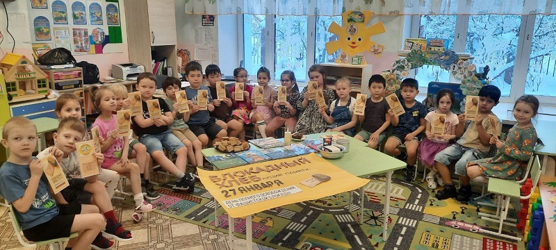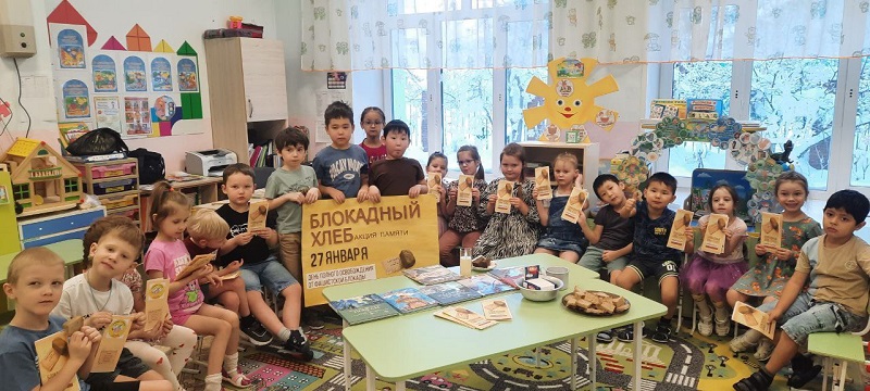 В рамках Всероссийской акции «Блокадный хлеб» библиотекарь детской библиотеки посетила детский сад «Звёздочка». Для воспитанников был проведен урок мужества, посвященный блокаде Ленинграда.