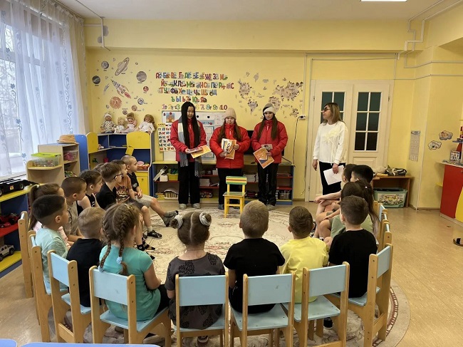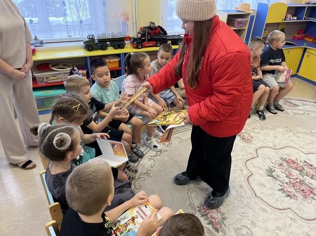 Затем эстафету добра приняли воспитанники детского сада «Белочка». Здесь дошколят подготовительной группы «Орешек» ждали не только новые книги, но и веселые минуты общения с гостями.